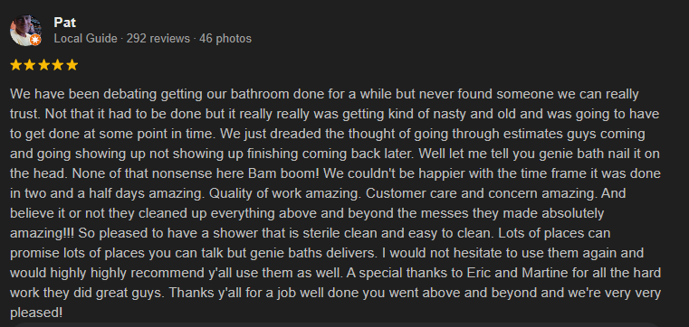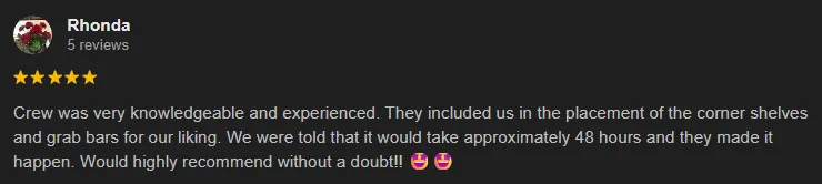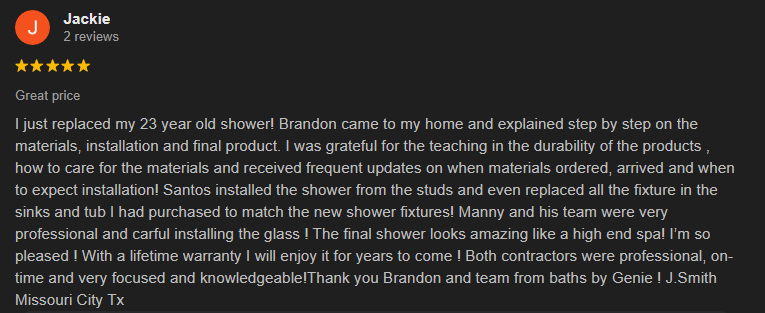 We’ve helped 1,000s of households across Texas transform their bathrooms into beautiful, functional spaces! As a family-owned company, we take pride in our X+ 5-star reviews on Google from happy local homeowners.